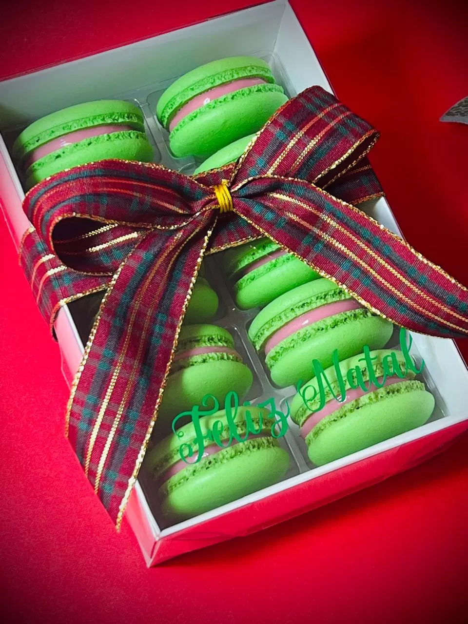 Caixa decorada de Natal contendo 10 unidade de macarons.