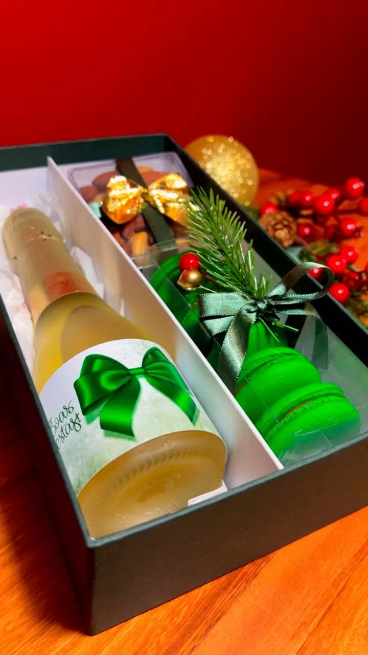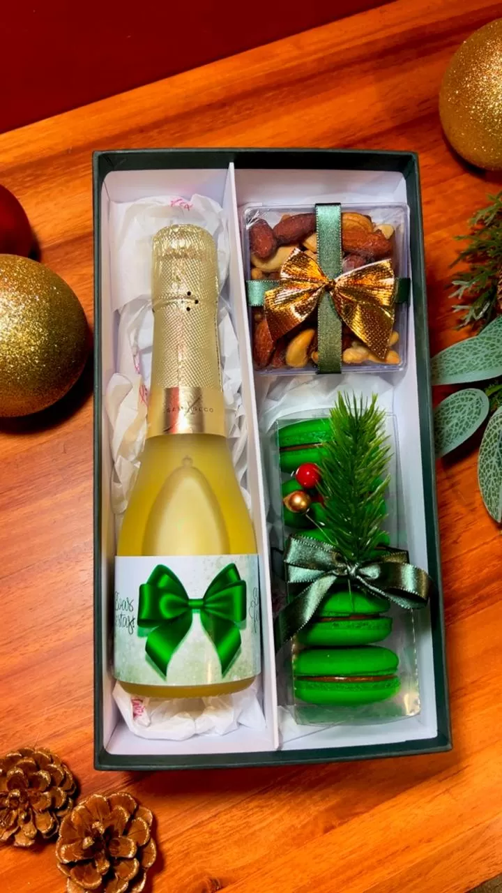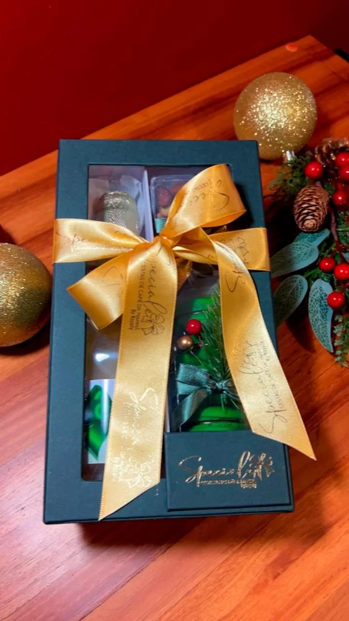 caixa cartonada, decorada de Natal contendo: