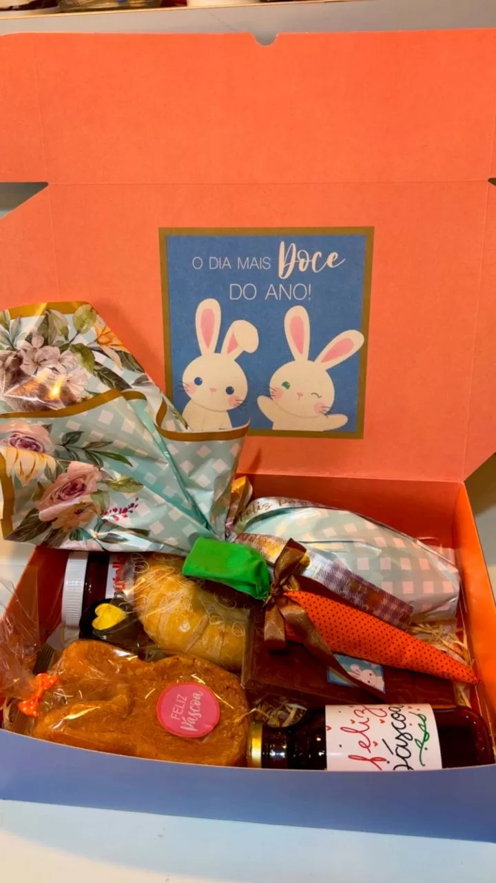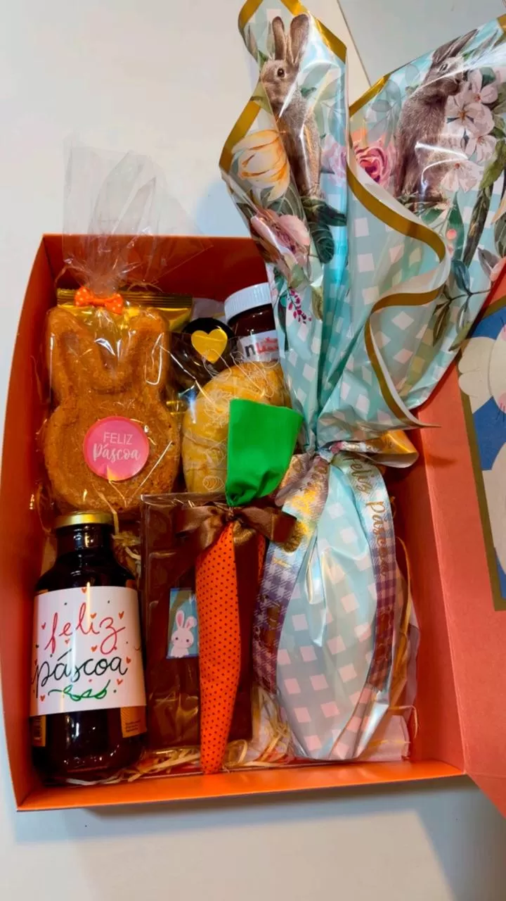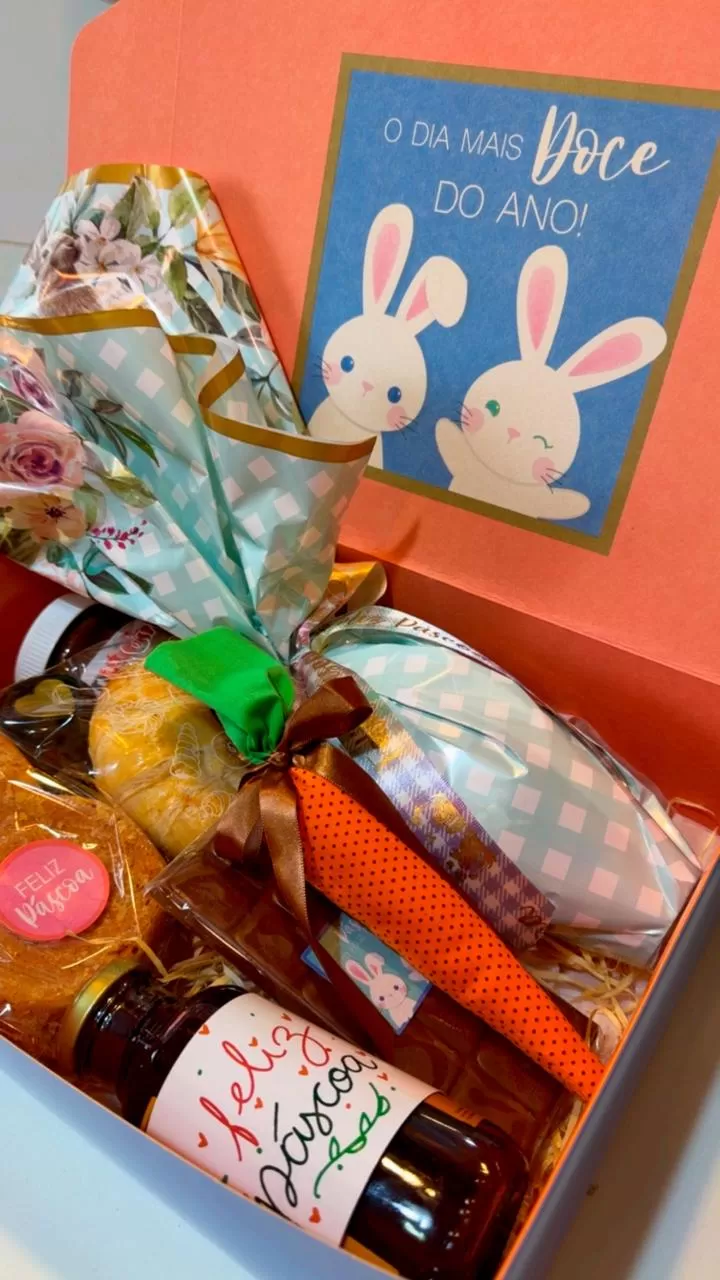 Caixa decorada de páscoa contendo:
